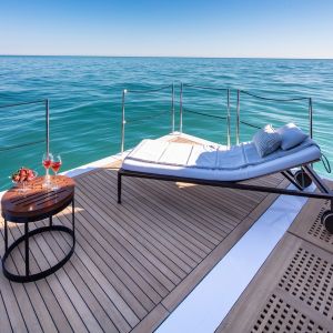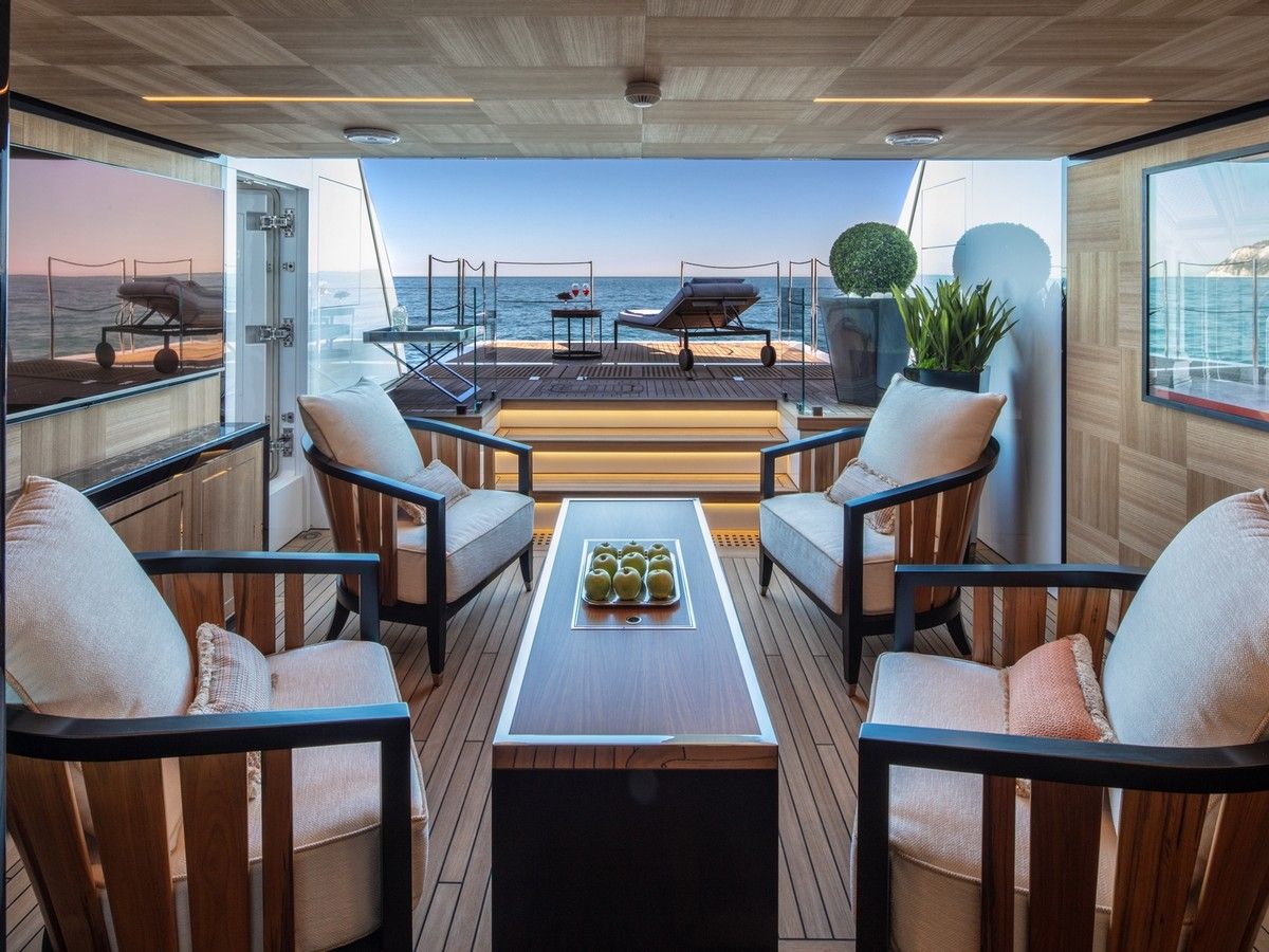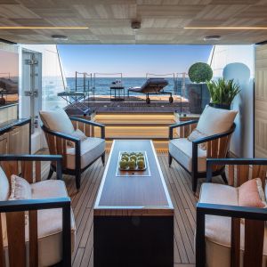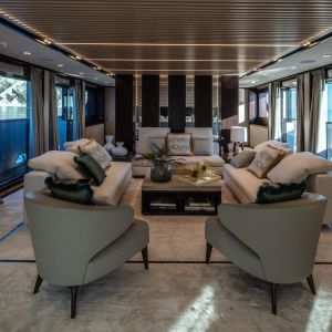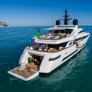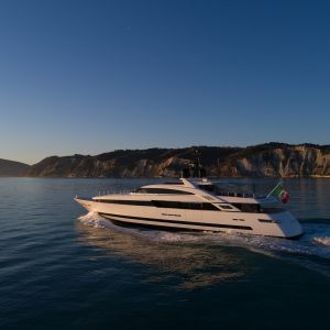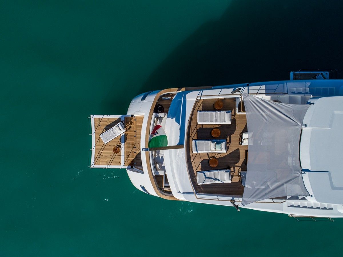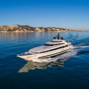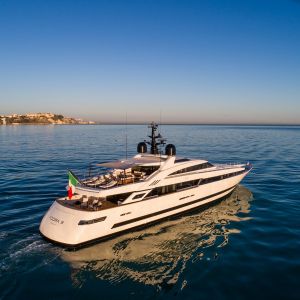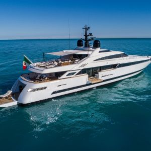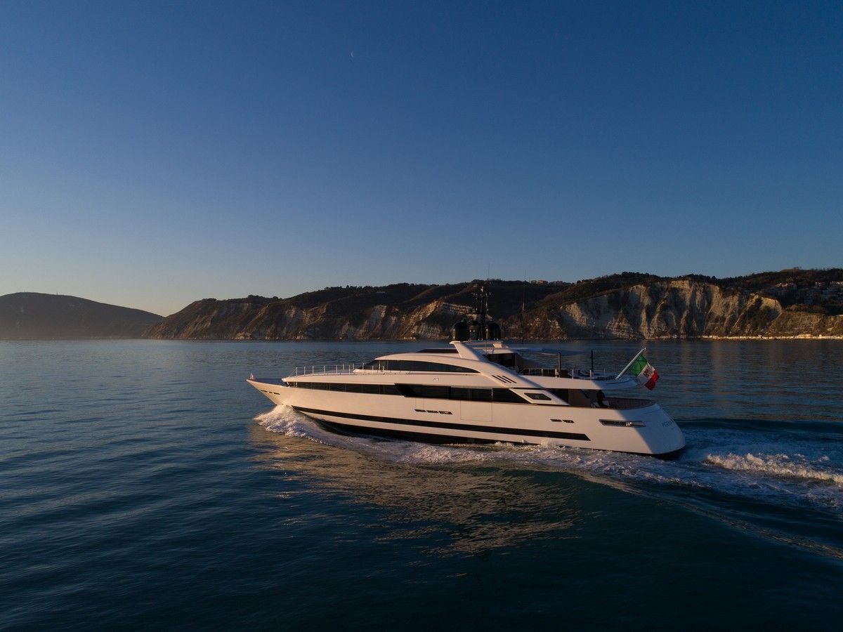 Il design del nuovo 43 mt di ISA Yachts con scafo e sovrastruttura interamente in alluminio è nato dalla ricerca stilistica di linee esterne pulite, essenziali e filanti che esaltassero il carattere sportivo e al contempo elegante di questo yacht. Il progetto coniuga passato, presente e le recenti innovazioni del cantiere. ISA Alloy 43 è motorizzato con due MTU da quasi 2.000 cv, in grado di garantire una velocità massima di 19 nodi e una confortevole andatura di crociera a 17 nodi. Riducendo il passo a 12 nodi, l’autonomia calcolata supera facilmente le 3.500 miglia nautiche. Su specifica richiesta dell’Armatore, questo superyacht a carena semi-dislocante mira al miglior mix tra performance e comfort. Un focus particolare è dedicato alla riduzione dei rumori e delle vibrazioni.