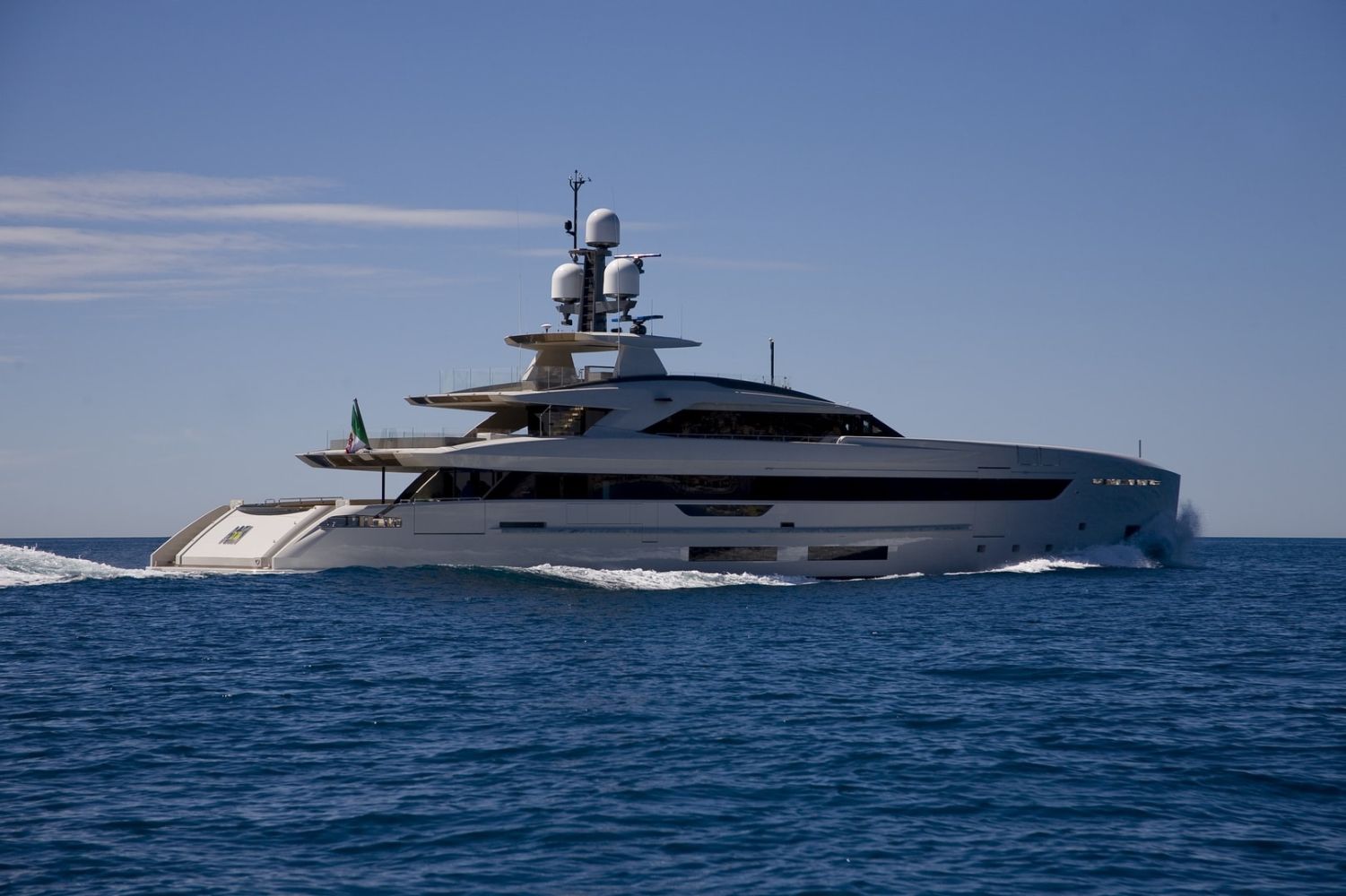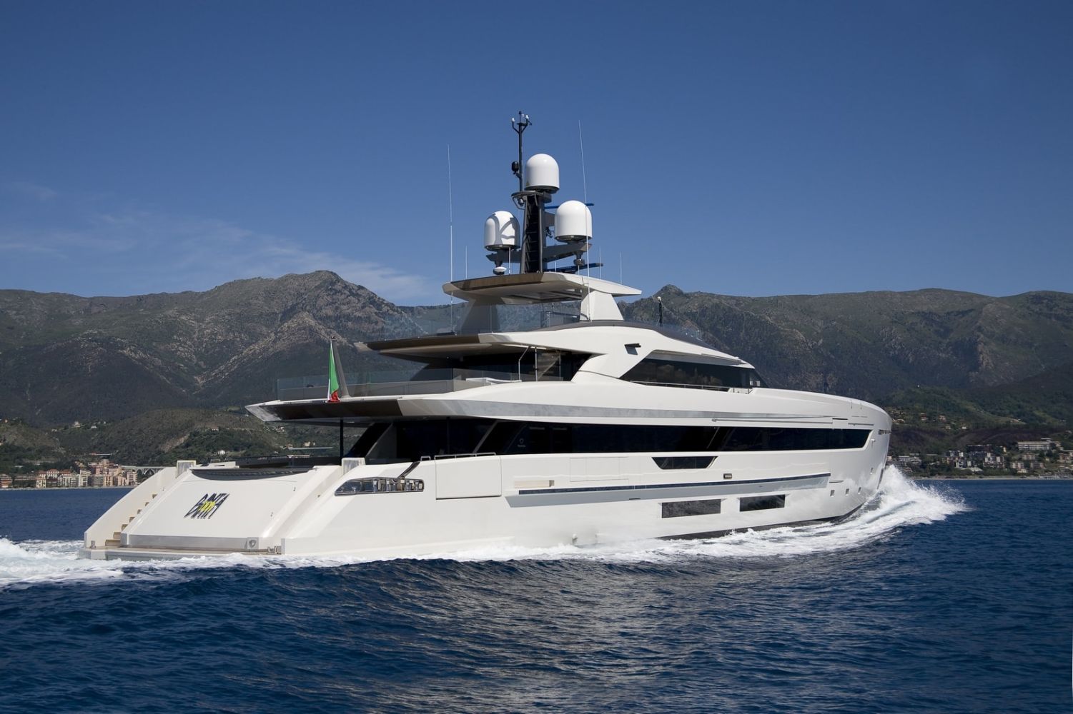 In modalità Booster Mode: con entrambi i motori principali e i generatori in funzione per alimentare i due motori elettrici e i servizi di bordo, lo yacht è in grado di raggiungere una velocità massima di 18 nodi.