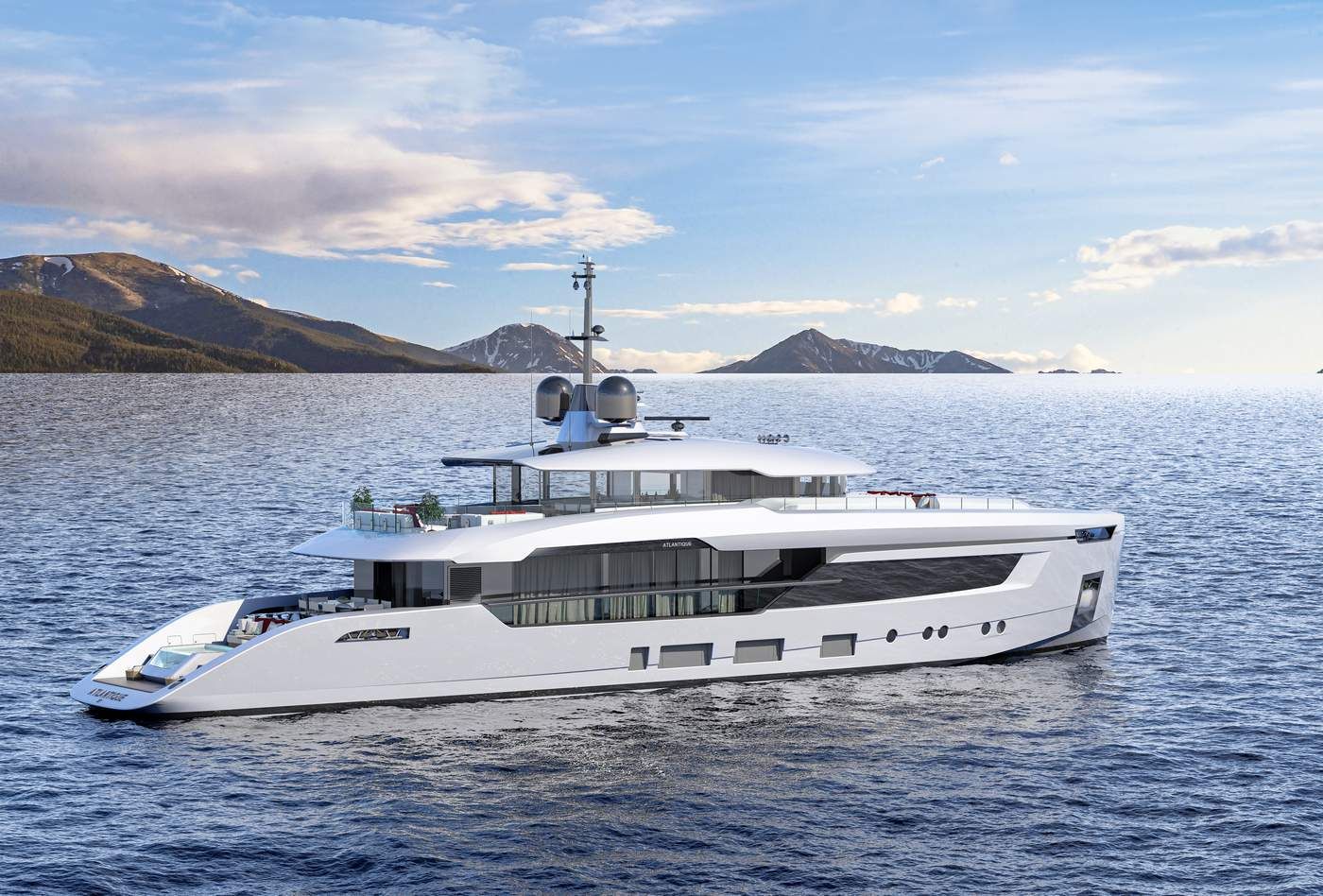 L’Atlantique 37M, con scafo e sovrastruttura in alluminio, è in costruzione presso il cantiere Palumbo Superyachts di Savona. Questo yacht si presenta compatto, con una linea sportiva pulita ed elegante. Uno dei suoi punti di forza è l’interazione degli spazi con l’ambiente marino. La zona di poppa, con la piscina panoramica, si trova a soli 50 cm dall’acqua.