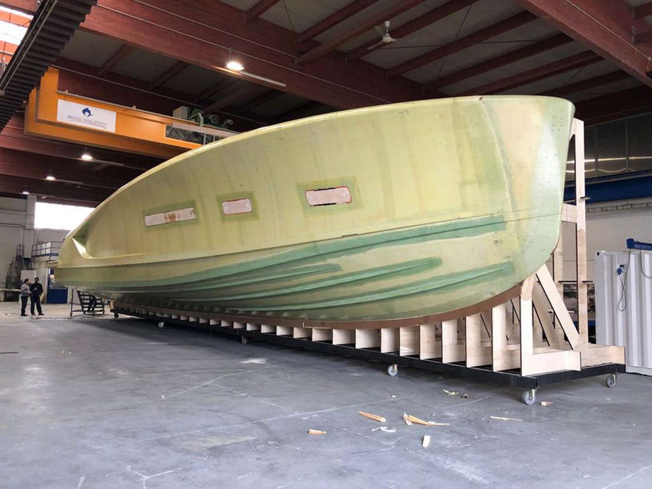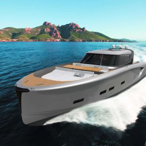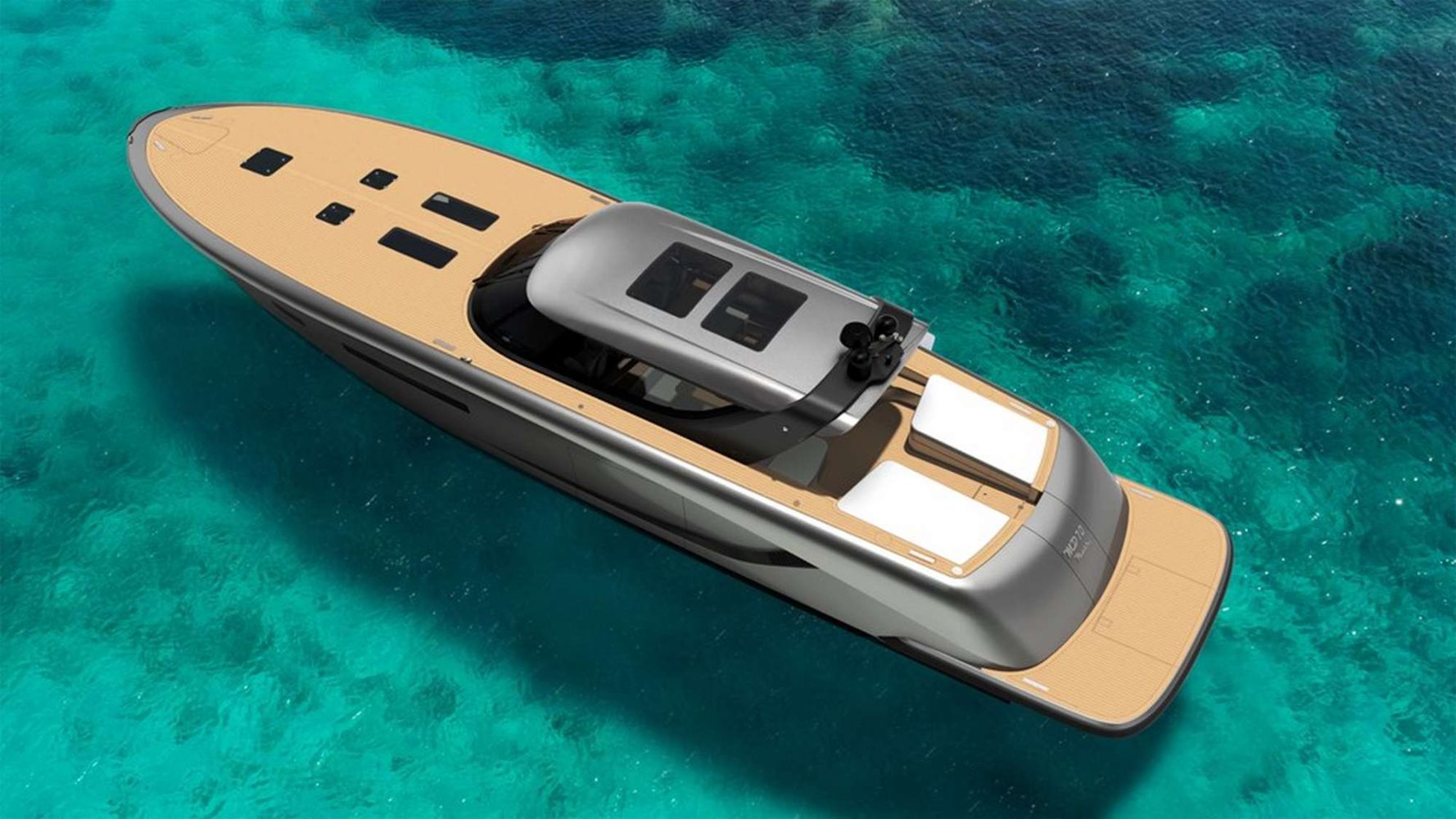Nato dalla richiesta di un armatore di avere un 70 piedi da usare come barca da appoggio del suo nuovo mega yacht, ha un allestimento ‘chase boat’ con ampi spazi liberi all’esterno, un garage con apertura laterale e con pochi grandi ambienti sottocoperta: un’ampia suite e un living con cucina, una cabina doppia per l’equipaggio e un bagno.